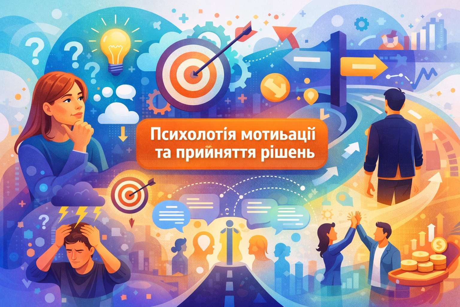 Дисципліна «Психологія мотивації та прийняття рішень» спрямована на формування у студентів системних знань про психологічні механізми мотиваційної сфери особистості та закономірності процесу прийняття рішень в різних життєвих та професійних ситуаціях. У процесі вивчення курсу розглядаються основні теорії мотивації, потреб, цінностей, цілей, а також когнітивні, емоційні та соціальні фактори, що впливають на вибір і поведінку людини.