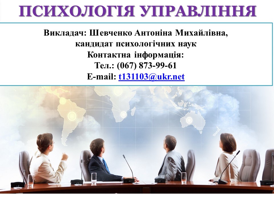 Дисципліна «Психологія управління» є складовою професійної підготовки сучасного фахівця та спрямована на формування системного уявлення про психологічні основи ефективного управління людьми та організаційними процесами. У межах курсу розглядаються психологічні аспекти керівництва, мотивації, лідерства, прийняття управлінських рішень, організаційної культури та міжособистісної взаємодії. Особлива увага приділяється вивченню психологічних механізмів впливу та переконання, стилів управління, методів формування згуртованих і продуктивних колективів. Розглядаються основні підходи до вирішення конфліктних ситуацій, способи підвищення емоційного інтелекту керівника та розвитку комунікативної компетентності. Вивчення дисципліни сприяє оволодінню практичними навичками психологічної діагностики, аналізу поведінки співробітників, управління мотивацією та організації ефективної командної роботи. Здобувачі освіти оволодіють знаннями, необхідними для забезпечення психологічного комфорту в колективі, профілактики професійного вигорання та підвищення загальної ефективності управлінської діяльності. У результаті вивчення курсу студенти зможуть застосовувати набуті знання для вирішення практичних завдань управління, враховуючи психологічні особливості окремих працівників і колективу в цілому. |