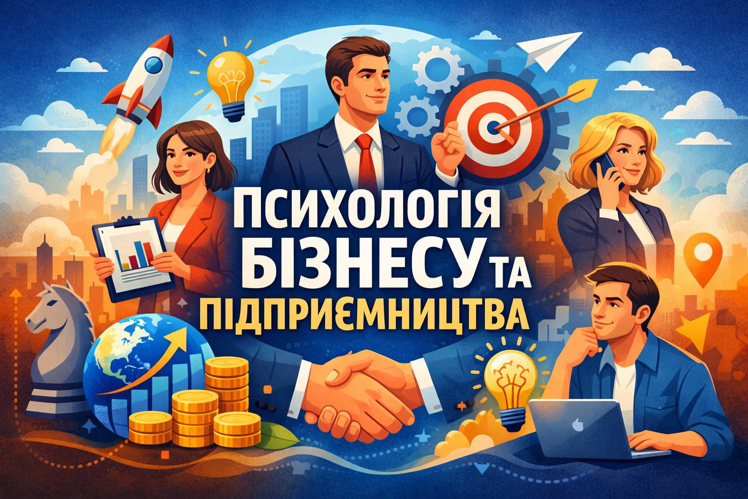 Дисципліна «Психологія бізнесу та підприємництва» спрямована на вивчення психологічних аспектів підприємницької діяльності та управлінської практики. Курс дозволяє студентам розкрити особистісні та мотиваційні фактори, що впливають на ефективність підприємця, розвиток лідерських якостей, самоменеджмент, прийняття рішень та комунікації в бізнесі.